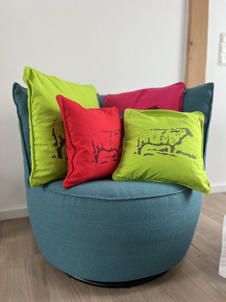 Hier findet ihr Holz- und Linolschnitte, Aquarelle und handbedruckte Textilien.