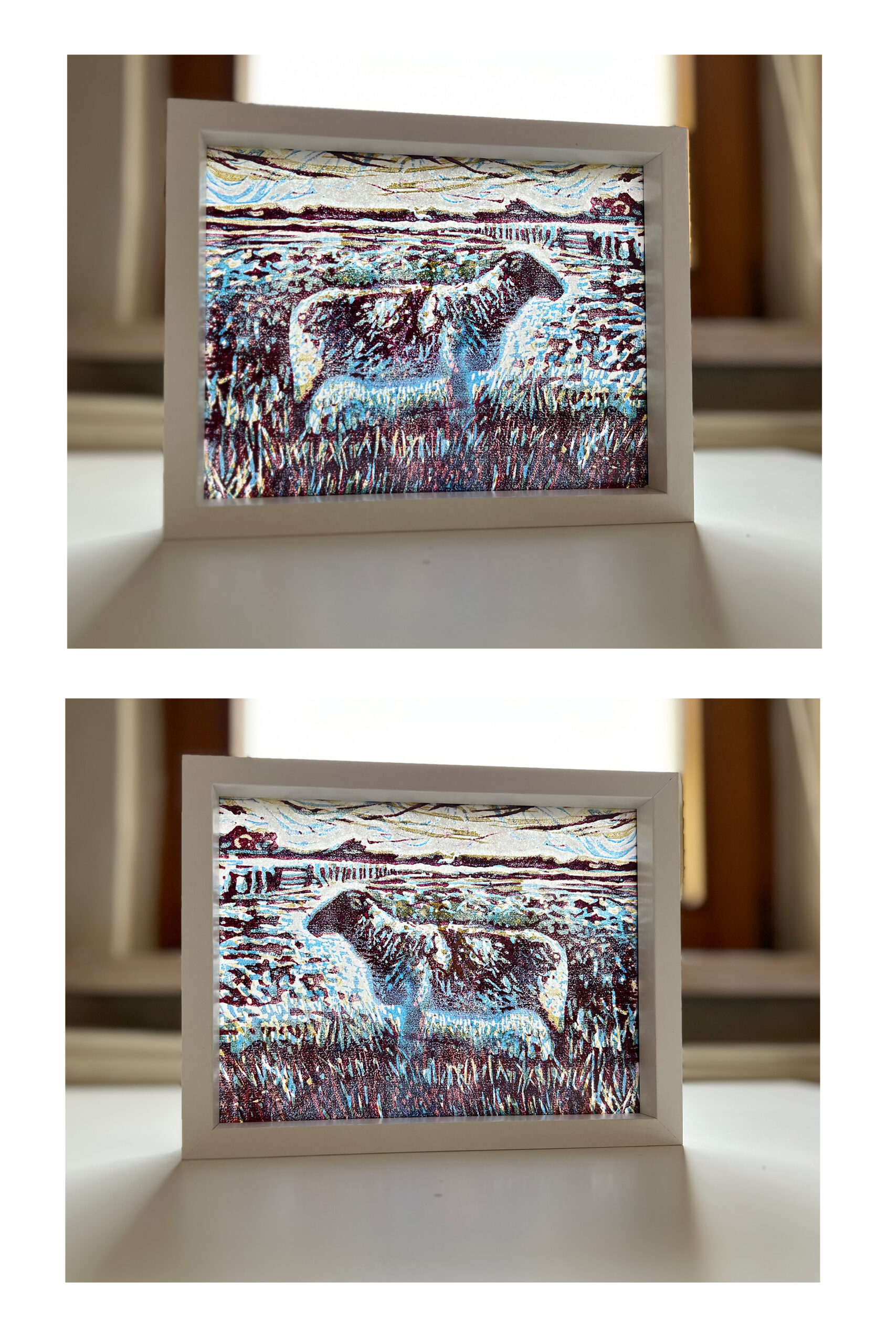 mehrfarbiger Linol-Holzschnitt, Unikatdruck, Rahmen Motiv: 15×20 cm, 2024